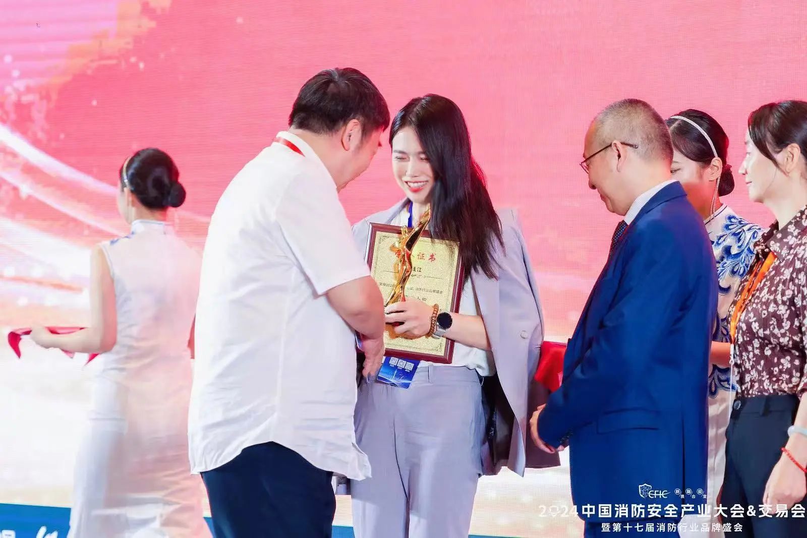 特别值得一提的是,我们的总经理周钱江女士在此次盛会中获得了“年度消防人物”的称号。她带领团队攻坚克难,不断创新突破,在推动行业发展方面做出了突出贡献。这份荣誉既属于她个人,也是全体台谊人的骄傲。