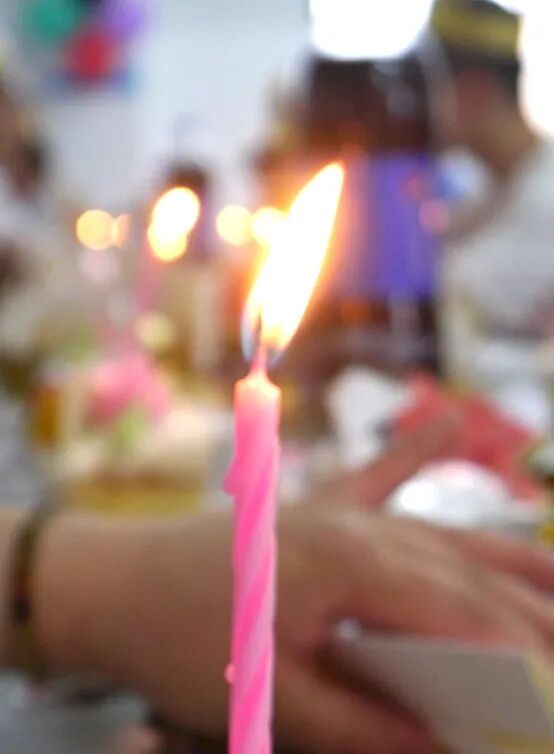 当生日快乐歌响起,寿星们双手合十,许下美好的愿望。