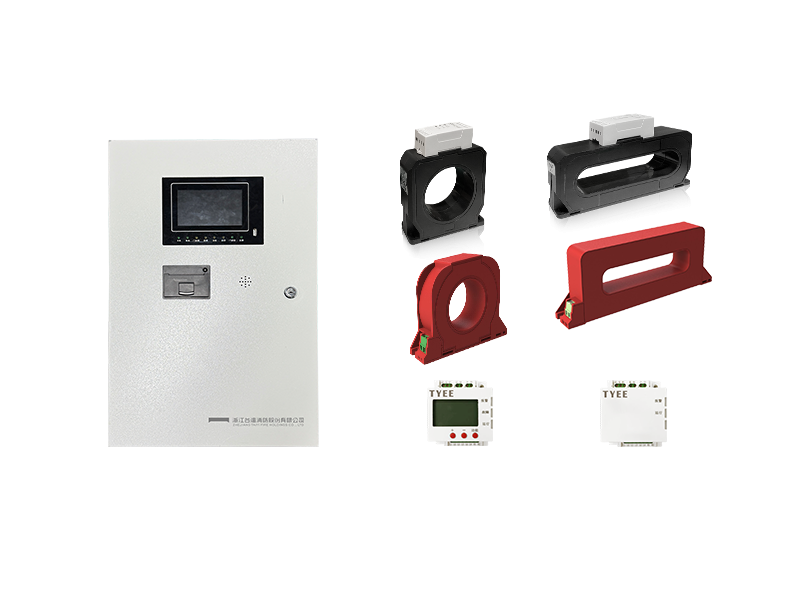 系统由TY-DQ-300电气火灾监控设备、若干台TY-SY3W-Z08剩余电流式电气火灾监控探测器、TY-SY3-Z44组合式电气火灾监控探测器、TY-SY3-Y41剩余电流式电气火灾监控探测器组成,可通过二总线组成监控网络。