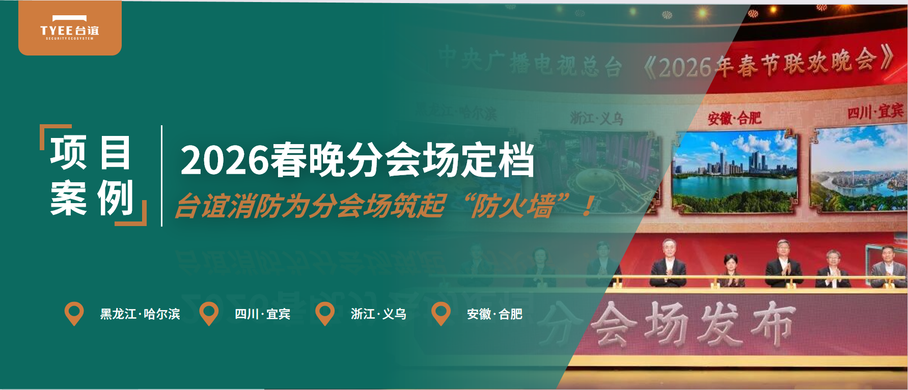 2025年12月28日,中央广播电视总台正式发布2026年春节联欢晚会分会场名单。哈尔滨、义乌、合肥、宜宾四座城市,将以独特的地域魅力与文化风采,共同点亮春晚舞台,盛会的背后,离不开消防安全基石。作为国内领先的消防安全一体化解决方案服务...